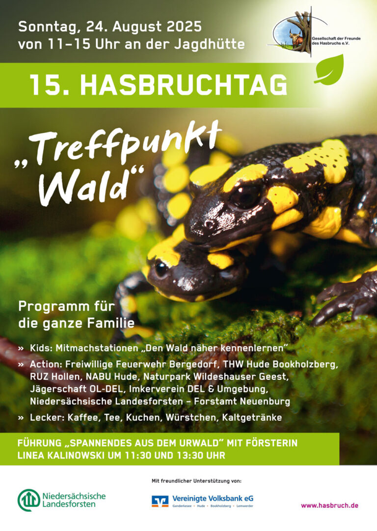Die Gesellschaft der Freunde des Hasbruchs und die Niedersächsischen Landesforsten veranstalten in diesem Jahr den 15. Hasbruchtag. In diesem Jahr ist das Thema: „Treffpunkt Wald“.